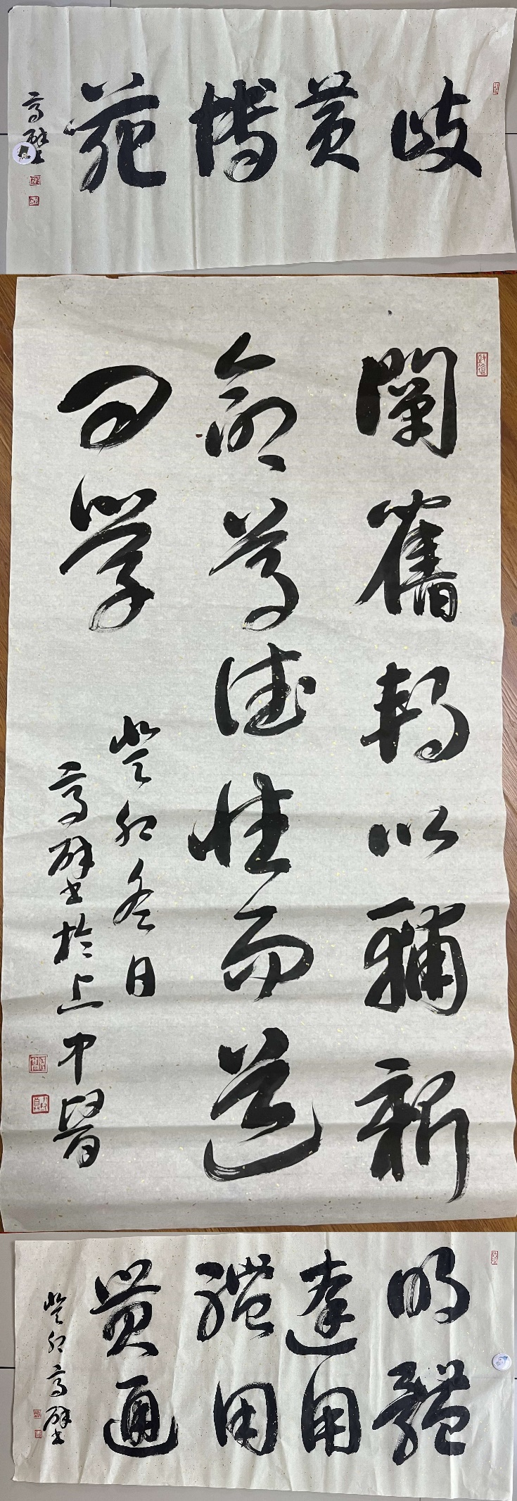 书法爱好者们也忍不住挥毫泼墨,压纸、沾墨、起笔、收笔一气呵成,一撇一捺、一笔一画间流露出对中华优秀传统文化的热爱和传承。现场顿时墨香飘溢、气氛热烈。没一会,一副副喜庆吉祥的春联和一张张福字便呈现出来。拿着书写好的春联和福字,大家露出幸福的笑容,好一派喜庆祥和的景象。