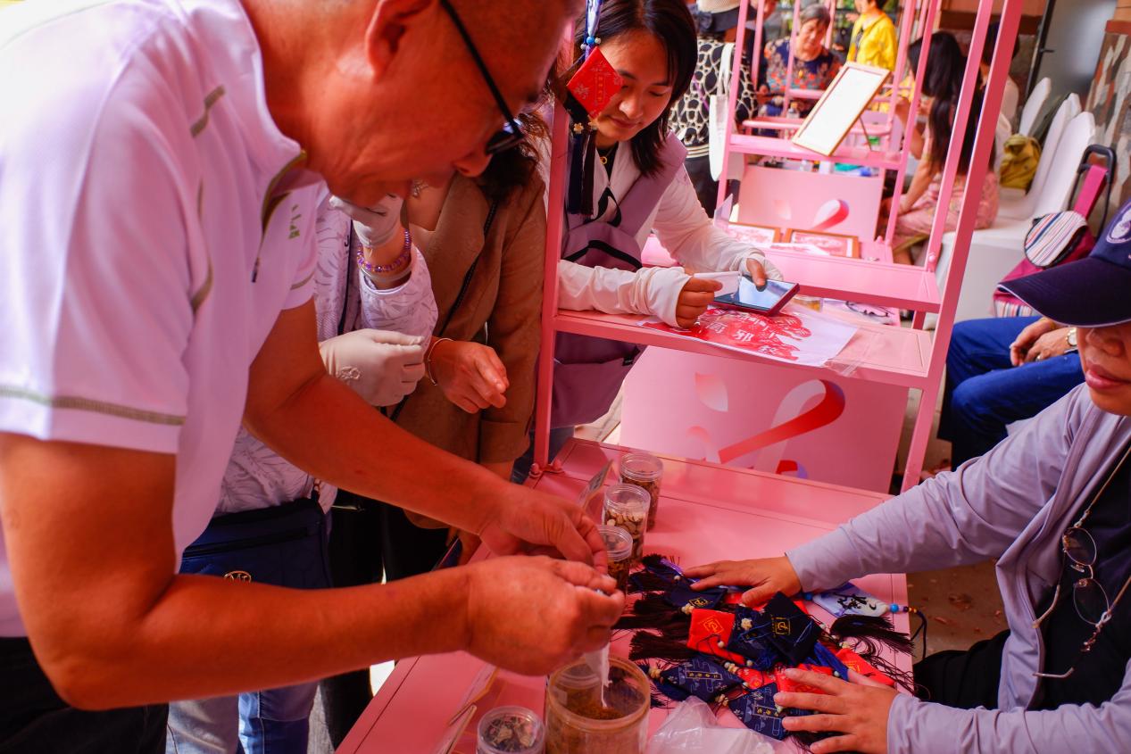活动现场,市民们积极参与,一同感受传统文化的魅力。上海中医药博物馆的工作人员们精心准备了各类中药材,现场教授大家制作香囊。从选择药材、闻香识药,到配伍混合、套入囊中,每一步都充满了乐趣和期待。随着香囊制作完成,现场弥漫着淡淡的草药香气,令人心旷神怡。在活动中发放了上海中医药博物馆参观赠券,让市民们在体验传统文化魅力的同时,还能深入了解中医药的博大精深。这些赠券不仅是对市民参与活动的奖励,更是对中医药文化传承和推广的一种支持。