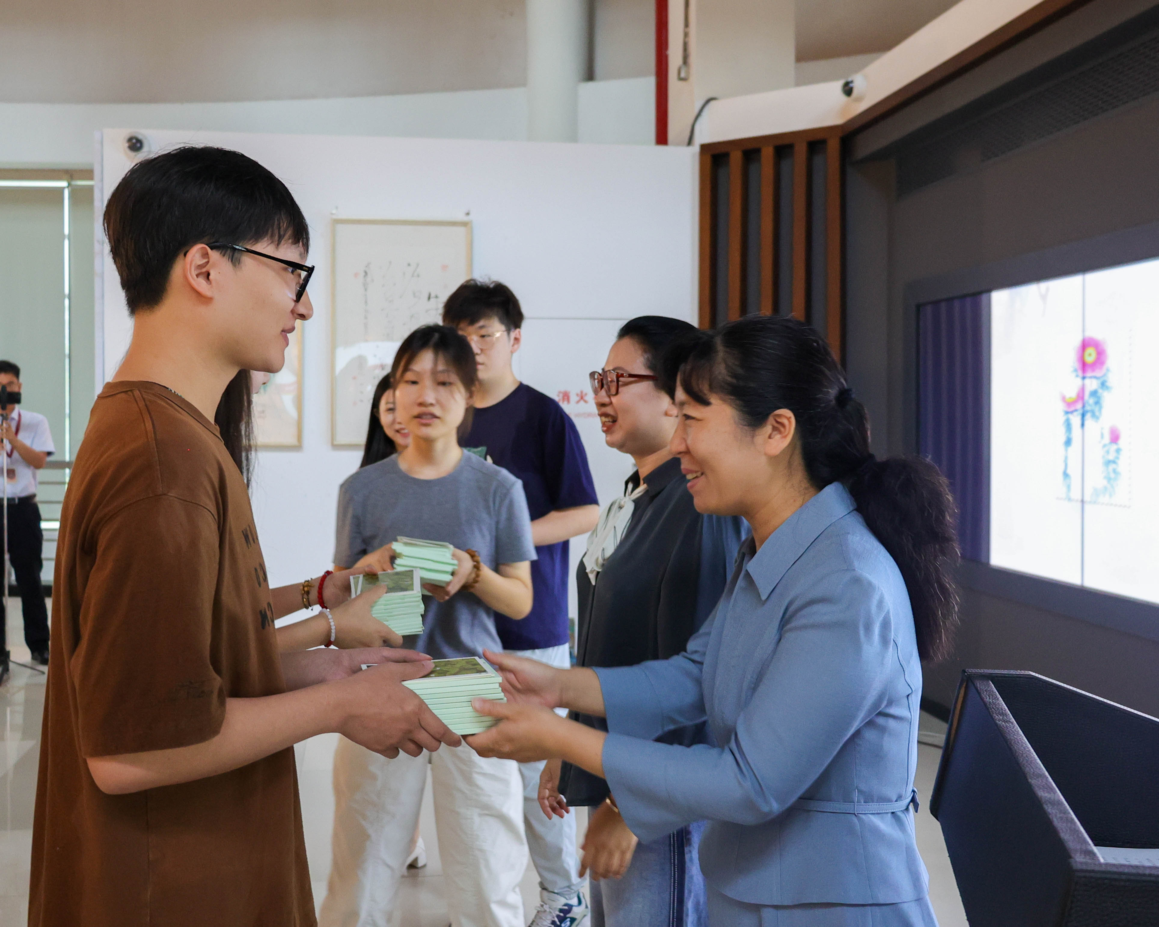 开幕式上,学校中药学院2024级中药创新班、科技人文研究院2024级研究生新生,获赠由上海中医药博物馆特别定制的一套具有中医药特色的“闻香识本草”明信片,内有一张百草园实景明信片和六张以不同种类中草药图片、名称、功效等信息呈现的专题明信片,不仅能向新生传播中草药知识,还可提升新生对中医药文化的认同和了解。此外,上海中医药博物馆还专为新生推出“薄荷”邮资宣传机戳,薄荷作为一种常见的中药寓意生命与健康,希望新生努力学习医学知识,为人类健康事业发展贡献磅礴力量。