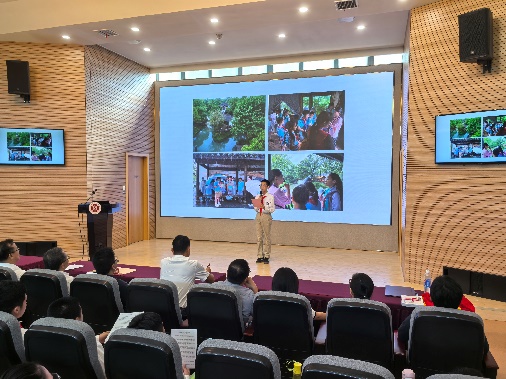 铜川学校是上海市中医药文化宣传教育基地,不仅依托校内本草创新实验基地开展丰富多彩的本草活动,更在研学实践中融入本草文化。铜川学校学生代表在现场分别以“陕西铜川中医药研学心得” “黄山毛峰与龙井:中国两大名茶之比较”“黄精健脾茶”“新安医学与祁门道地中药材”为主题分享研学成果。李赣受邀点评学生们开展的研学实践,并分享中医药研学中的科学教育理念,认为中医药拥有丰富的科学教育资源,将科学教育融入研学过程可起到“1+1>2”的育人效果。杨光富作研学旅行教育专题报告,从研学旅行的由来、学生汇报的体会、馆校合作的期待三方面展开探讨。
