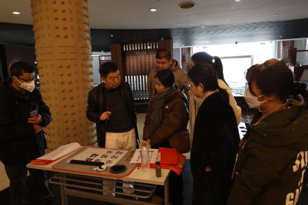 “金蛇迎新岁,把福带回家”。“翰墨迎新”书法撰写活动正式启动。书画专家和书法家饱蘸浓墨、笔走龙蛇,书写着对新年的温暖寄语。一个个福字和一副副春联在他们的笔下跃然纸上,充满了浓浓的新春气息。高壁还从执笔、用笔等方面讲解书法基本知识,并示范各种福字的写法。教工杏苑书画社和学生各家撷英社的社员们“一展身手”,将平时学习的书法技巧淋漓尽致地展现。在场的书法爱好者也纷纷挥毫泼墨,以笔寄情,书写出一幅幅饱含新年祝福与美好期许的书法作品。现场墨香袅袅,笔尖跳跃之间,传统文化的韵味尽显。