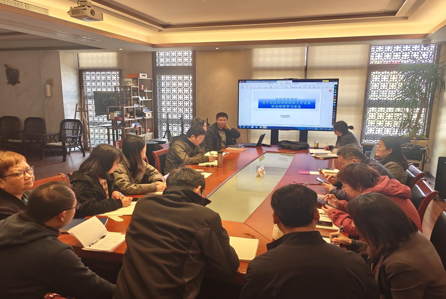 4月2日,为了更好地铸牢中华民族共同体意识,博物馆召开《习近平总书记关于加强和改进民族工作的重要思想学习读本》专题学习会。支部副书记郭峰主持会议并分享学习心得,博物馆全体职工参加会议。