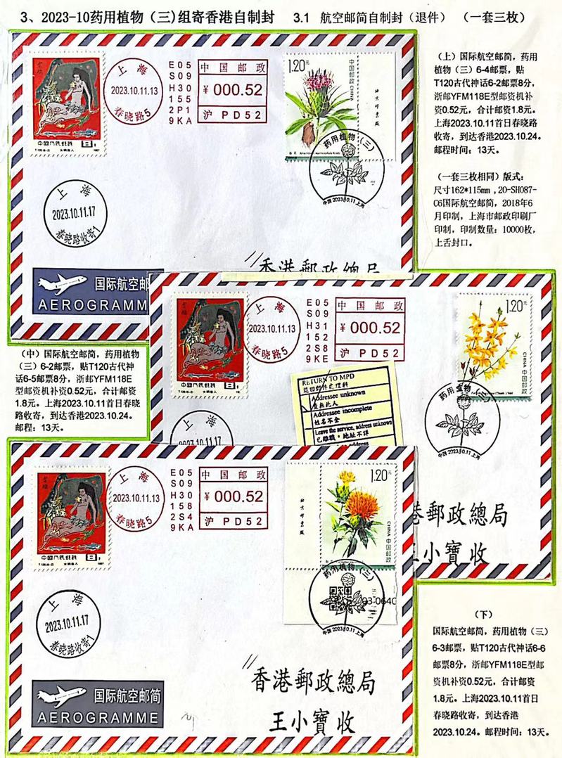 【邮票里的医学】2023-10药用植物(三)组寄香港自制封