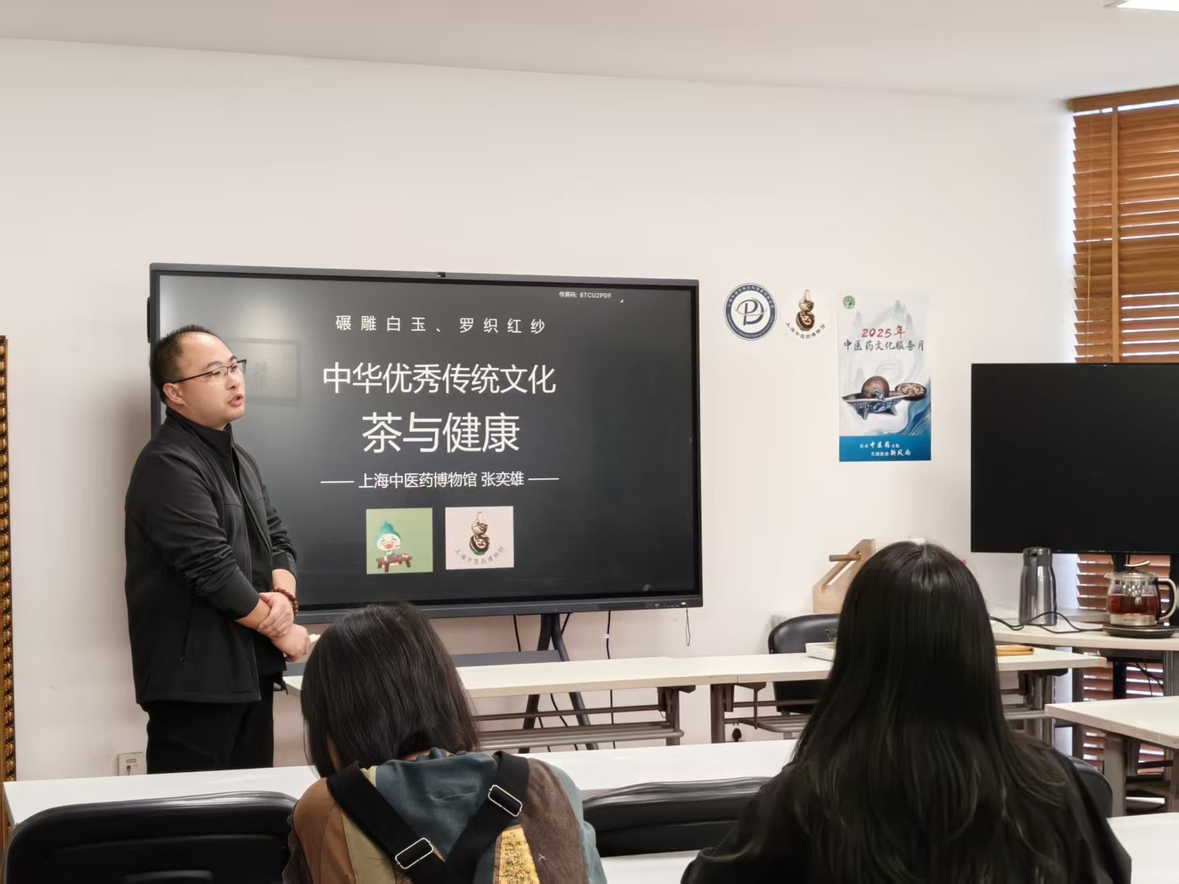 11月5日下午,上海中医药博物馆三楼洋溢着墨香与茶香交织的雅致气息,一场面向市民的以“黄帝内经智慧“与”中国茶文化”为主题的社会大美育课堂在此温情启幕。作为博物馆深耕公众文化服务、传承中医智慧的重要载体,本次活动吸引了30名热爱传统文化与健康养生的市民朋友齐聚一堂,大家在行云流水的笔墨、清醇淡雅的茶香中,沉浸式感受着中医药文化的独特魅力。