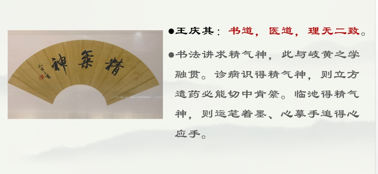 活动伊始,由上海市名中医、开云电竞官网下载安卓终身教授王庆其教授的亲传弟子——中医学院内经教研室王丽慧老师带领,为观众讲述书法作品创作者王庆其教授为人、为学、为师的成长历程经验,并结合其书法作品,既解读了笔墨间的文人风骨,更深挖其中蕴含的中医哲理:“书道,医道,理无二致”,让观众在欣赏书法艺术之美的同时,间接领悟中医 “天人合一” 的核心思想。