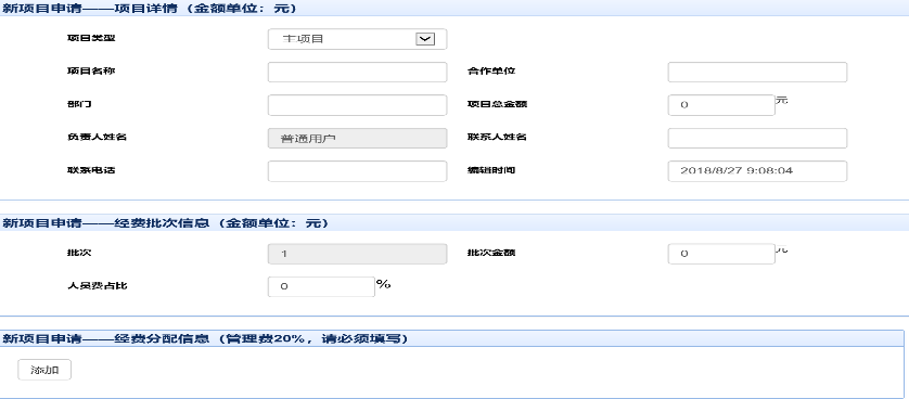 根据子项目授权新建子项目申请。