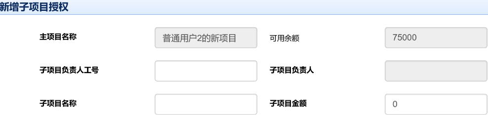 主项目负责人可在项目立账后建立子项目授权。