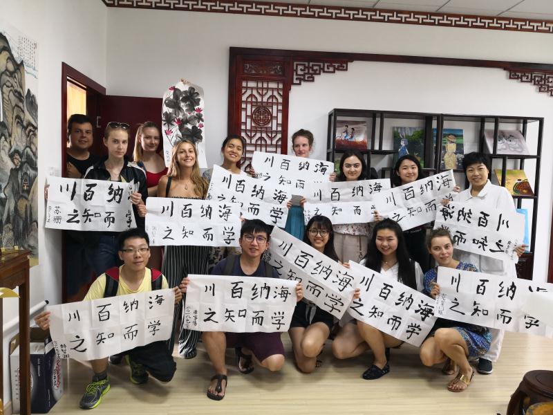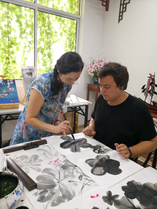 Students were experiencing Chinese culture in Shanggang Community Health Center.