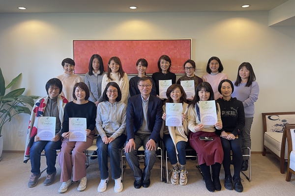 Japanese participants in the TCM class take a group photo at the end of the class.