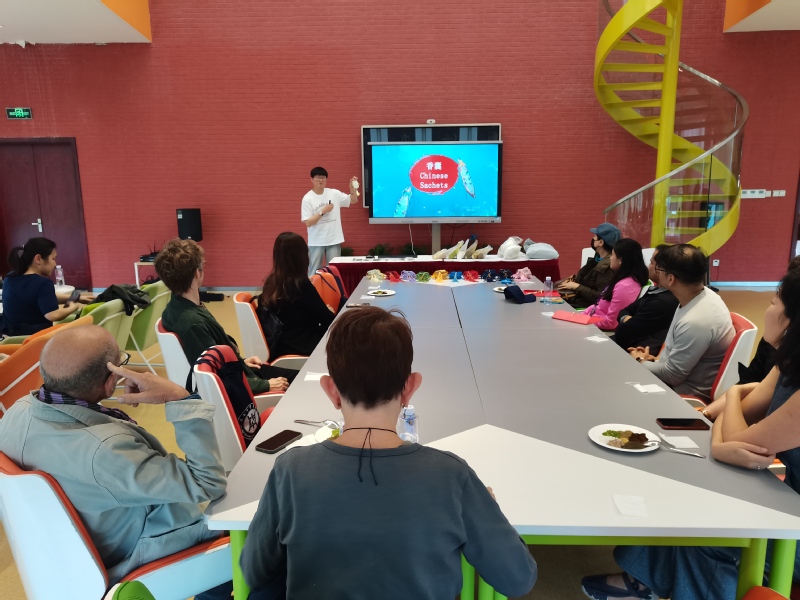During their visit to TCM Museum, the faculty adn students from NYU Shanghai gained an insight into the history and development of Chinese medicine. Through the hands-on sessions crafting scented herbal sachets, students delved into the origins of these aromatic treasures, deepening their understanding of Chinese medicinal herbs. Embarking on this “fragrance quest”, participants immersed themselves in the enchanting realms of traditional aesthetics and Chinese medicinal culture.