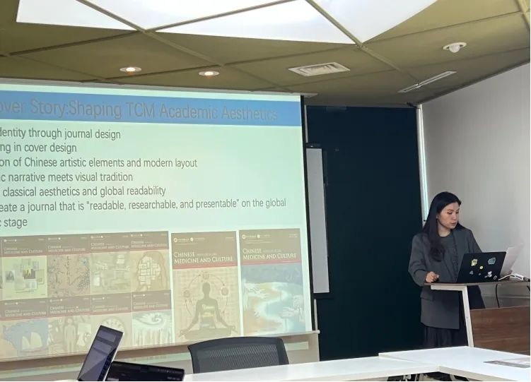 研讨会上,《中医药文化(英文版)》编辑部主任、执行主编李海英编审以《全球视野下传统医学期刊出版模式研究——以Chinese Medicine and Culture为例》(A Study on Publishing Models of Traditional Medicine Journals from a Global Perspective——Chinese Medicine and Culture)为题,全面回顾了国际传统医学领域学术期刊的现状与发展趋势,并系统介绍了《中医药文化(英文版)》在国际化办刊方面的模式探索、特点与实践。报告受到与会专家广泛关注,为传统医学类期刊的国际合作和发展提供了有益参考。《中医药文化(英文版)》编辑杨杨参与交流研讨。