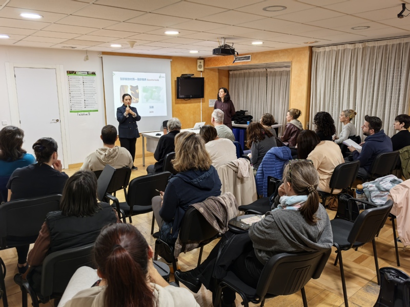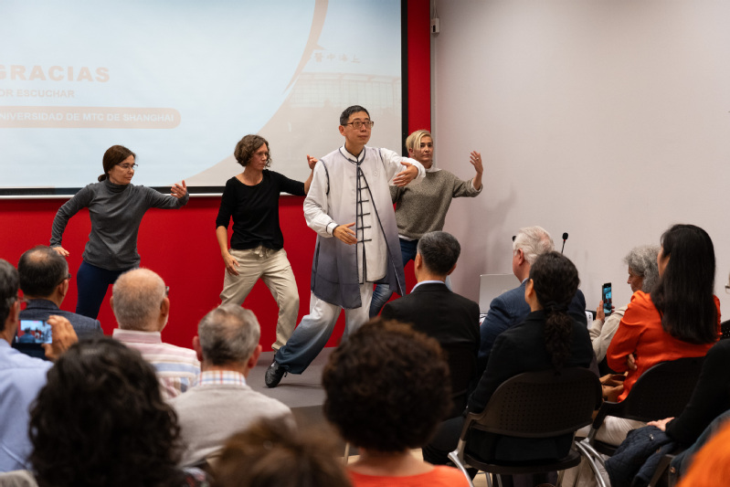 上海市气功研究所围绕《中华传统经典养生术》系列丛书的宣传推广,与欧洲中医药基金会合作,举办了为期两天的太极健康中医功法教学,30余名来自西班牙的中医医师、理疗师及太极气功爱好者学习了太极健康六字诀、回春功和针灸技法等,为全球健康提供中国智慧与解决方案。(上海市气功研究所)
