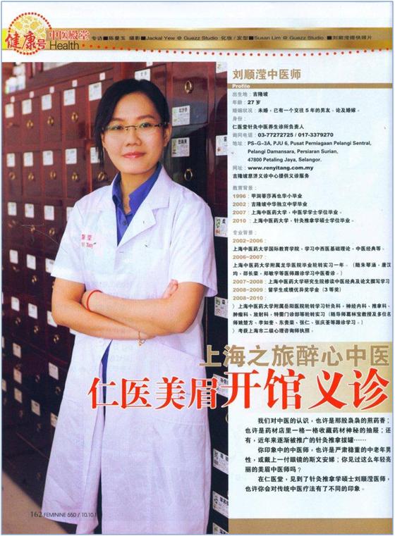 我来自马来西亚,吉隆坡。出生在一个小康之家,父母都是商人,也都没有医学家庭背景。从2002年来到上海学习,2006年本科毕业,接着继续攻读针灸科硕士学位,在本科实习和硕士学位轮转是曾跟随多位上海名老医生学习。(随导师葛林宝教授及各位名师姚楚芳、李如奎、张仁、东贵荣等跟诊学习)