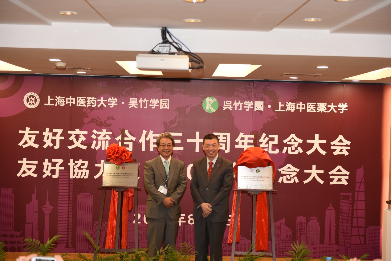 胡鸿毅和坂本步还为在两校互设的“国际教育合作中心”揭牌,并互赠纪念品以庆祝两校友好交流合作三十周年。