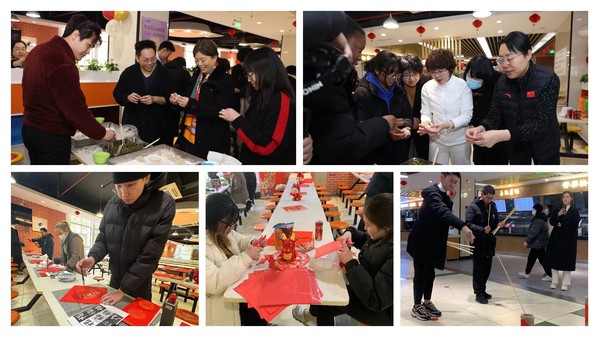春节民俗文化作为中华民族独特的文化遗产,具有丰富多彩的内容,本次活动设置了笔下生辉、投壶纳福、剪纸迎新、广“饺”好运四个部分,师生在实践中共同体验中国民俗的魅力,亲手完成富有创意的春节作品。挥毫泼墨,一笔一划跃然纸上,寄托新春祝愿,现场翰墨飘香,“福”至四方;投壶属于中国古代博戏,由射礼演化而来,师生跃跃欲试,向着新年目标奋勇一掷,引来现场阵阵掌声;剪纸作为一种非物质文化遗产,寄托了人们对美好生活的向往,一折一剪,妙趣横生,勾勒出来年的蓝图;包饺子活动将迎新氛围推向了高潮,大家一边交流着饺子的美好祝福,一边学习着制作手法,脸上洋溢着灿烂的笑容,刚出锅的饺子热气腾腾,是师生的心意之作,也传达了学校的关爱与节日的温暖。