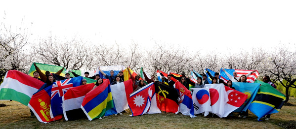 杏花绽放,情暖校园。2024年3月19日,来自27个国家60余名中国政府奖学金生齐聚于杏花树下,身披各自国家的国旗,共同合影留念。这一场景凝聚着跨国的友谊和中医药教育的力量,展现了各国学子来华求学深造的决心与努力。奖学金生以国家的象征为荣,彰显着国际交流与合作的重要意义,携手迈向知识的殿堂。