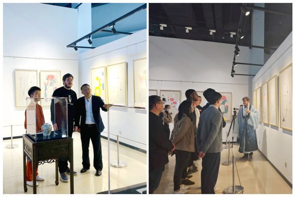 随后,国际学生前往上海中医药博物馆观赏陈家泠教授《岐黄丹青 造福人类》书画展,通过博物馆讲解员摩尔多瓦籍国际学生大礼物的讲解,同学们在中草药艺术书画与《本草纲目》中感受中医药文化与艺术精粹的交融。展览中,岐黄医学的精髓被艺术家化为绘画作品,不仅展示出了博大精深的中医药传统知识,以及匠心独运的艺术魅力,更透露出对人类健康的探索与关怀,彰显了中医药学对于世界人类健康福祉的贡献。就像上海中医药博物馆馆长李赣在给国际学生讲解员培训时,面对画作《咏梅》所指出的:这份作品是对毛泽东主席《卜算子·咏梅》的再创作,当时中国正处于三年自然灾害时期,毛主席写咏梅词鼓励大家坚强不屈、敢于战胜困难。表现了中华民族自力更生、自强不息的气概和中国文化的传承之道。以艺术之美绘本草之韵,这是我校将传统文化现代化的一次积极尝试,也是美育教育的生动实践,更是一场生动的大思政课。