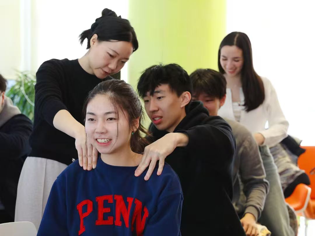 宾大师生们于我校聆听中医基本理论和推拿讲座,了解中医药的核心理念和科学知识,并学习和体验了中医推拿技术在日常保健和临床治疗中的应用。在参观了校博物馆及上海中医健康服务协同创新中心后,对中医药的历史发展和中医药与现代科技结合有了更深的认识,体会到中医药在全球健康领域的广阔前景。结合龙华医院的实地参观,深入了解中医治疗流程,并尝试了刮痧、拔火罐等中医技术,还进行了中医面膜、香囊制作和花茶等中医药体验活动。