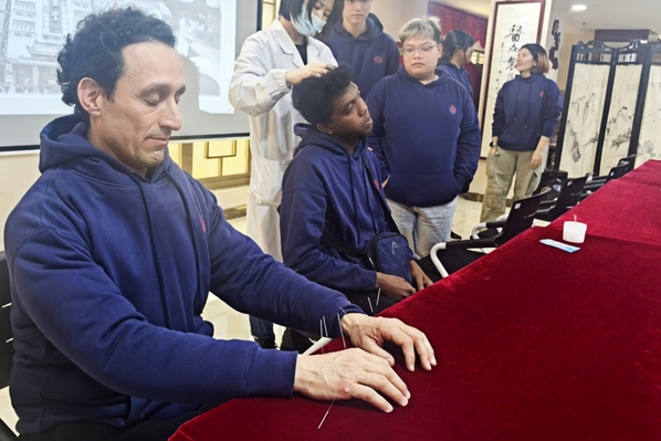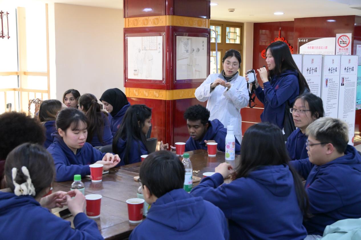 蔡同德堂创始于1882年,是中华中药老字号商店,也是2024年国家留学生基金管理委员会发布的“感知中国”文化实践基地。同学们聆听了针灸治疗常见疾病的讲座,针对针灸推拿的演示手法,踊跃提问,现场气氛热烈。