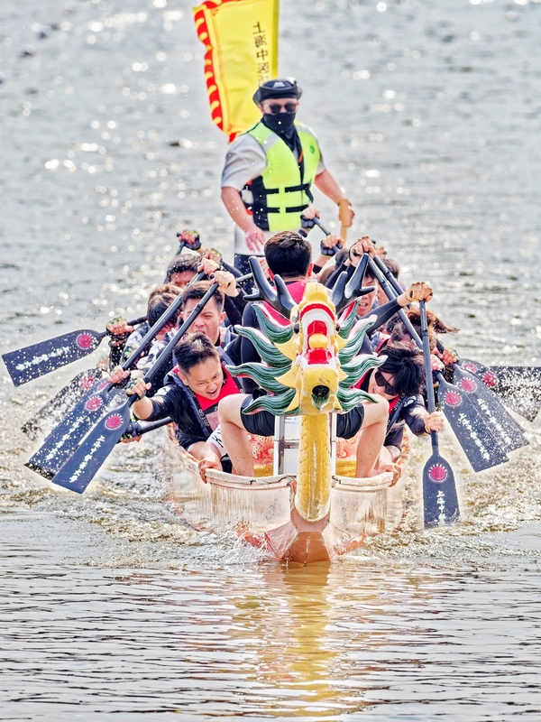 这支充满斗志的龙舟队由来自5个国家的23名留学生组成,包括第一次接触龙舟运动的新生和已参加多届比赛的老队员。恰逢考试周,从组队到参赛,他们只有短短两个月的集训时间。“第一次训练时,我们还处在互相磨合的阶段。”来自马来西亚的新生游灏斌和林筠竣回忆道,“一群优秀的队友帮助我们不断进步。”在体育部老师敖翔的专业指导下,队员们进步神速。学校的训练河道上每天都能看到他们刻苦训练的身影。来自哥伦比亚的小海第一次参加龙舟赛,内心既兴奋又紧张,“在哥伦比亚,从来没有这样的传统活动,如今,我竟真的穿上救生衣,握紧船桨,成为其中一员。”