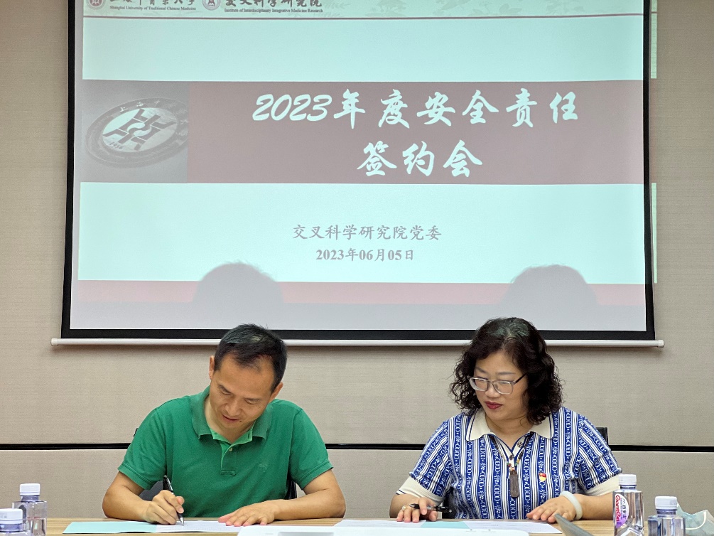 签约仪式上,祝建龙书记与中心主任代表进行安全责任制签约。