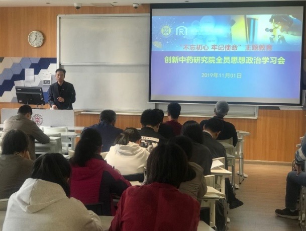 日,创新中药研究院召开主题教育全员思政学习会,并由总支书记姚广涛向创新中药研究院全体教职工介绍主题教育情况及进度。