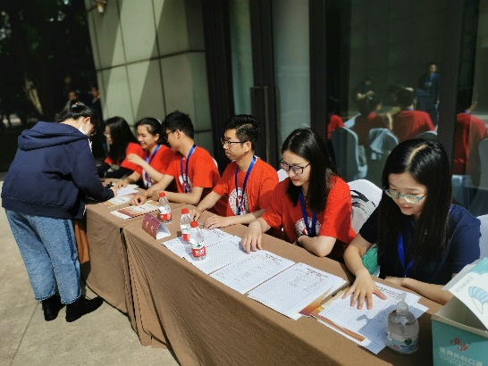 在本次院士论坛中,签到组的志愿者们主要负责来自不同高校学生老师、附属医院、媒体的签到工作。本次活动共500余人参会,一天两场会议要完成1000余次签到,但繁重又琐碎的工作没有磨灭他们脸上洋溢的笑容。他们用灿烂的笑容,勤劳的双手、饱满的热情去认真做好志愿服务的点滴小事。