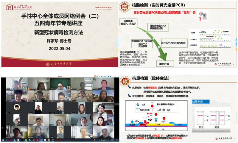 5月4日上午9点,创新中药研究院手性药物研究中心举行了全体教职工及同学线上例会。在上海当前的疫情形势下,结合五四青年节主题,中心老师许家珍博士和叶文博博士分别作了“新型冠状病毒检测方法”和“怎样建立独立思维和逻辑体系——毛泽东文选选读感悟”的主题报告。