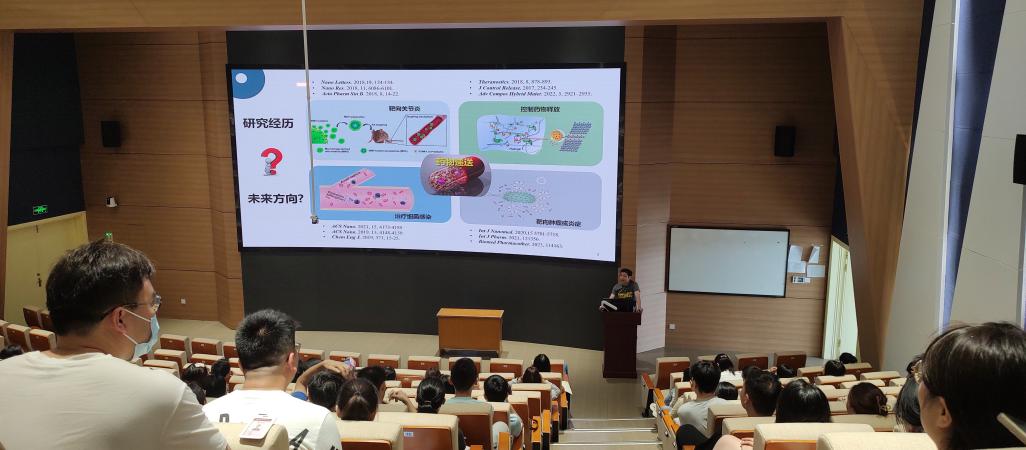 李老师首先介绍了自己出国的初衷和选择,认识到科研为了寻求突破,需要出去看一看,寻求他山之石,接受新的思想启发。然后,其介绍了在英国帝国理工大学学习3D/4D打印技术应用于药物制剂的研究。3D/4D打印技术已经被成功应用到航空、航天、工业设计、生物医疗、文创等诸多领域,产生了很大的社会效益和经济效益,但在国内,将3D打印应用于纳米智能递药系统的报道非常少。李老师利用3D/4D打印技术设计了基于磁力组装的甲烷型和三角形自组装装置,并且结合药物贮库的pH敏感材料脱落并缓释药物,发展了一种膀胱内缓释药物的雏形。这类基于特定疾病设计的人性化递药系统和研究过程让听讲座的同学们都眼前一亮。最后,李老师和同学老师还交流自己在伦敦的奇闻妙事,切实解答海外访学所面临的困惑和疑虑,引导学生树立跨文化交流意识,实现高质量的科研交流和学习。