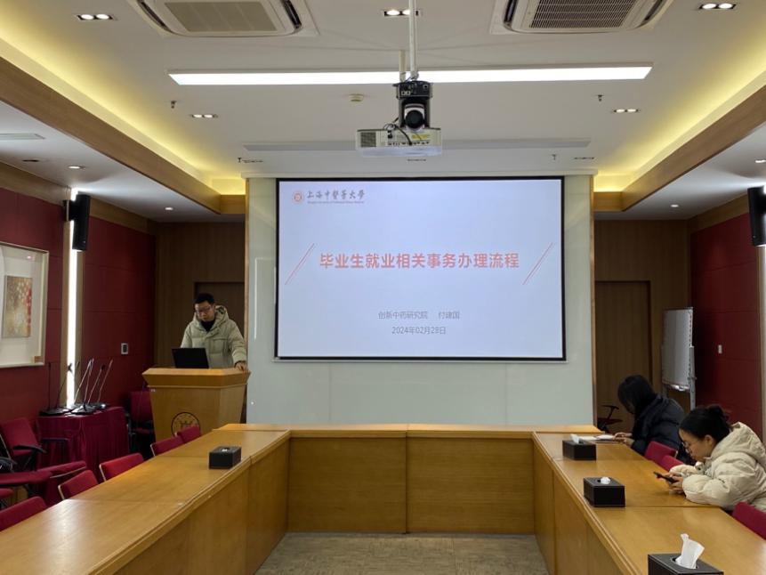 为帮助我院毕业生了解就业形势,助力毕业生高质量充分就业,2月28日下午,创新中药研究院于6500会议室召开2024届毕业生就业事务培训会议,本次会议由创新中药研究院团支部书记付建国主讲,吕阳阳老师出席,2024届全体毕业生及部分非毕业生代表参加。