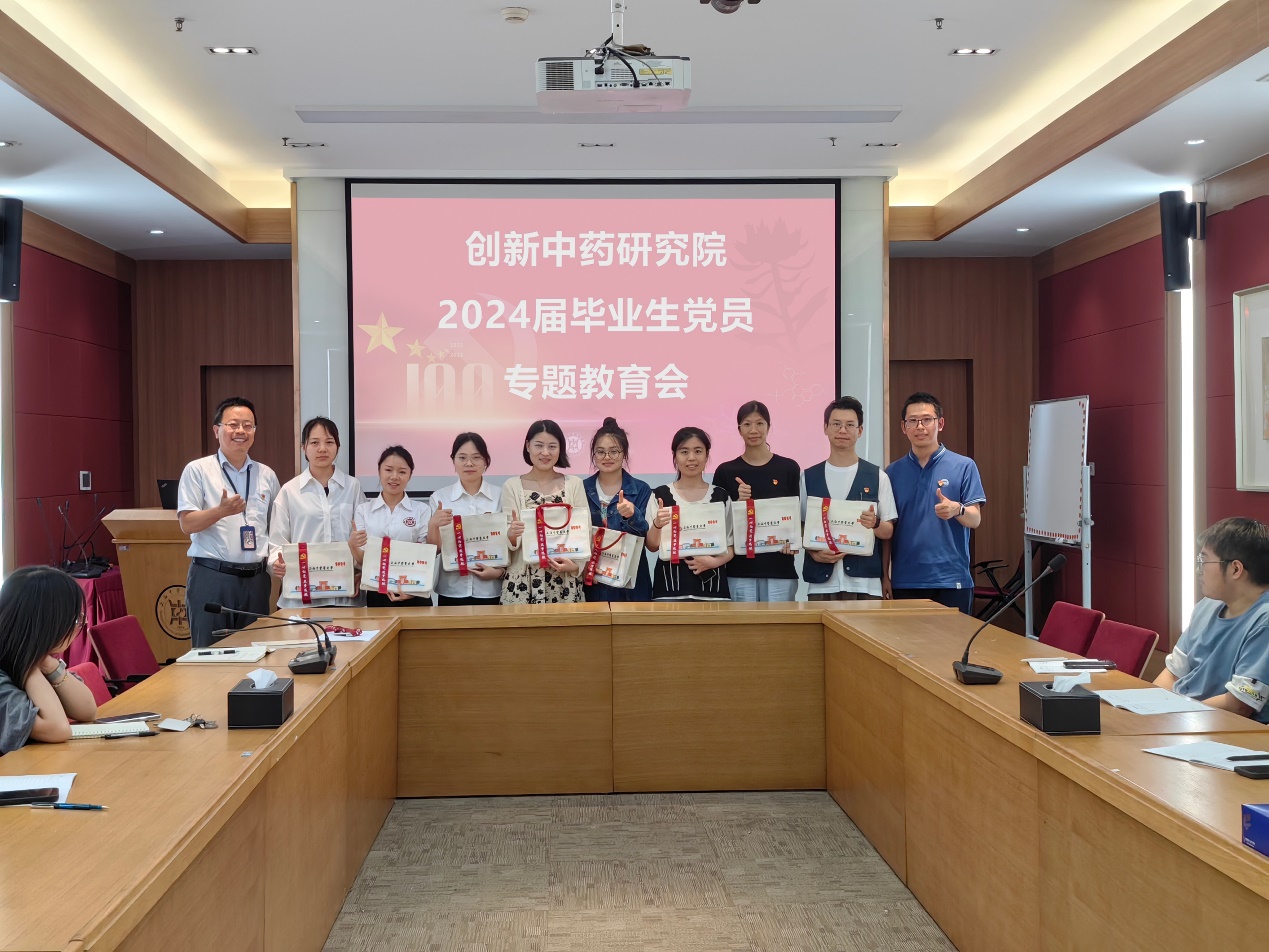 为深入学习贯彻习近平新时代中国特色社会主义思想和党的二十大精神,推动党纪学习主题教育走深走实,做好毕业生党员离校前的集中党性教育,6月26日晚,创新中药研究院党委在6500会议室举办了毕业生党员离校前教育大会。这次会议旨在引导毕业生党员坚定理想信念,遵守党纪法规,牢记党员身份,在人生新阶段发扬先锋模范作用。