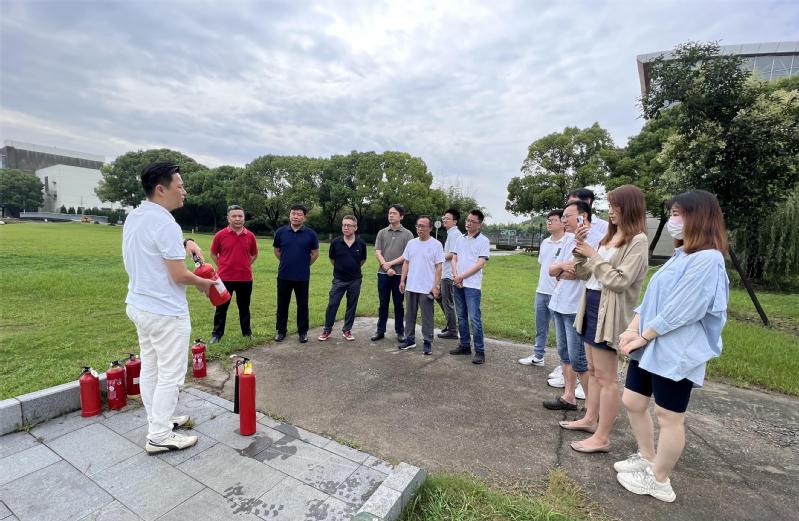 上午9点整,信息办党支部与保卫党支部近30人在体育馆北侧的女贞路集合,开展消防应急演练活动。