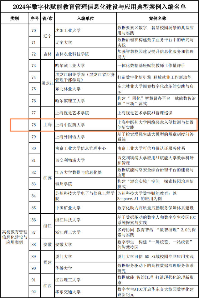 2024年12月5日,我校提交的《网络恶意入侵检测与处置创新实践》案例,经过教育部教育管理信息中心评选,成功入选《2024年数字化赋能教育管理信息化建设与应用典型案例》。