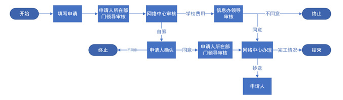 流程说明:教职工在线提交校园网络布线申请。