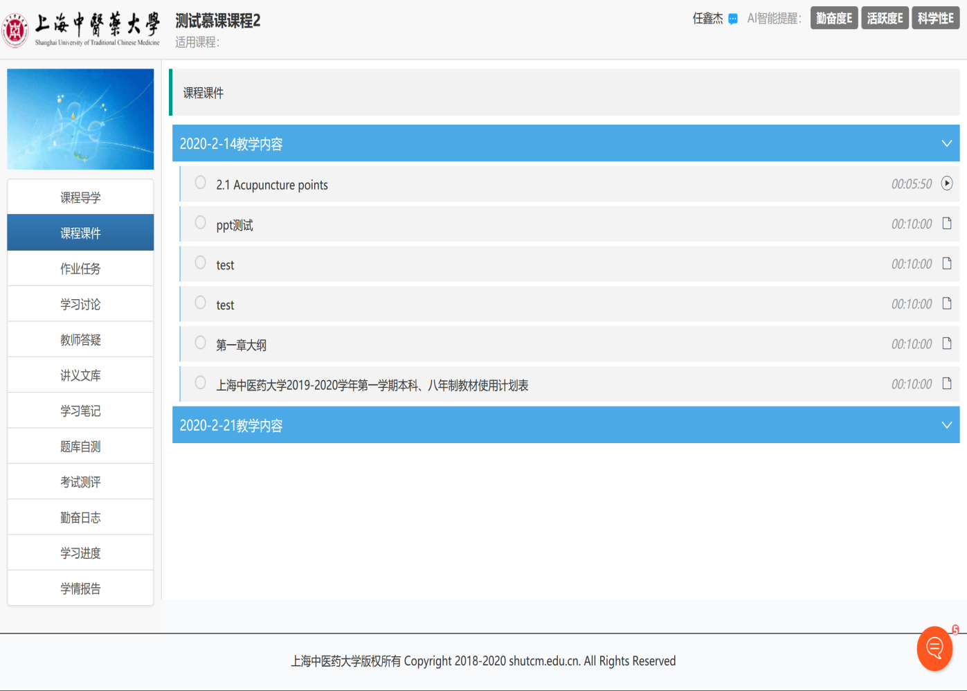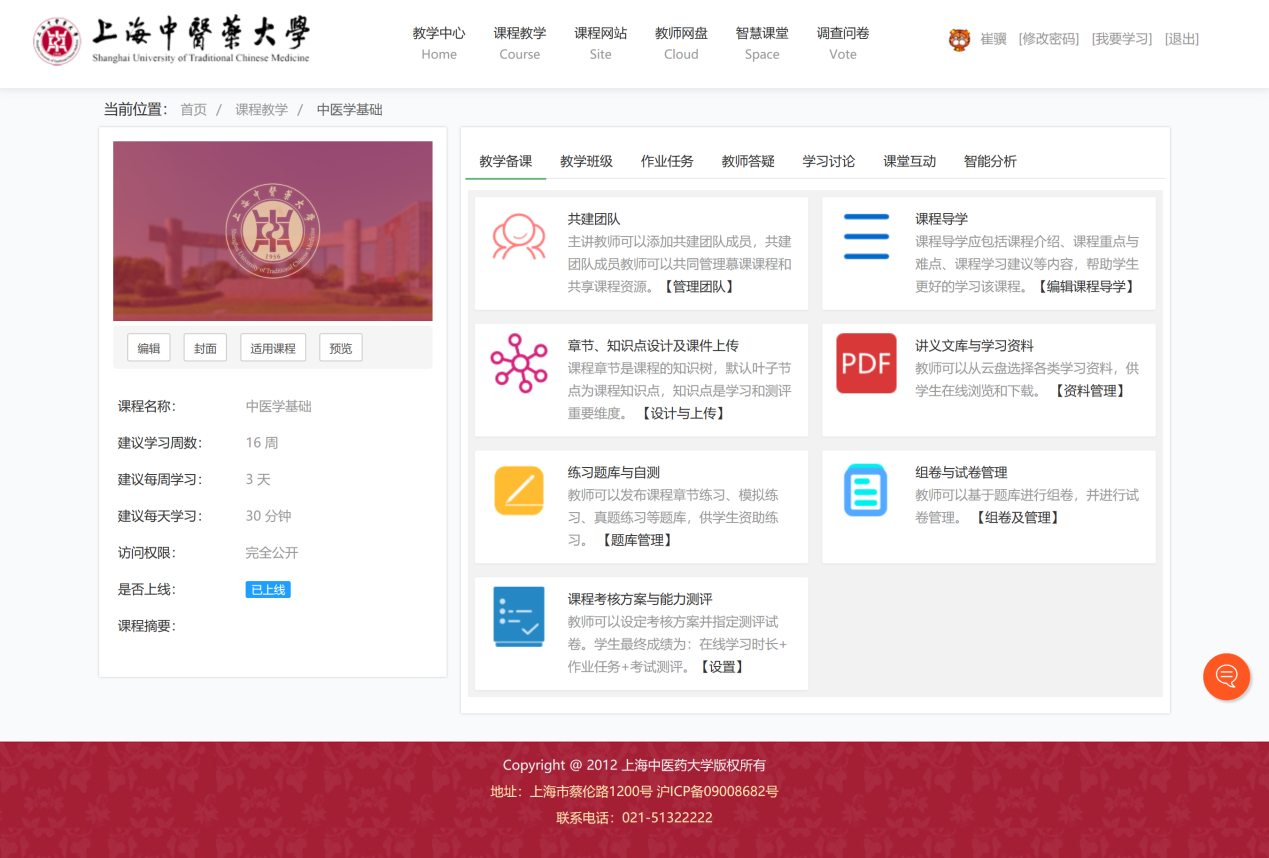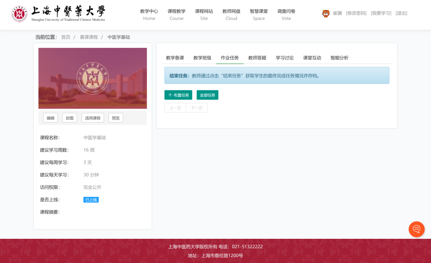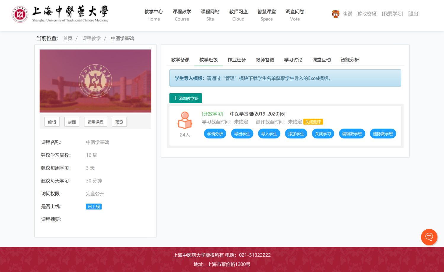1.进入课程教学模块,选择要上传的课程,点击课程管理。
