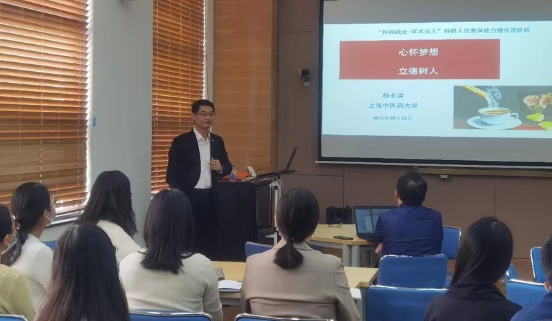 10月24日杨永清副校长带来开班第一讲“心怀梦想,立德树人”,教师发展中心主任项乐源主持。杨校长以国家的总体需求、严谨的科学精神为切入点,以习近平总书记关于中医药创新发展和科教兴国等理论为指导,讲述了科研人员应该勇于畅想、大胆假设、认真求证;应该心怀梦想,在做好科学研究的基础上,为培养创新科技人才、一流领军人才、建设创新团队提供有力支撑。同时,杨校长建议科研人员在工作中要“想医学问题,做科学研究,让患者获得最大收益”;在承担教学工作时,要“立师德,树德人”,只有具有坚定的理想信念、高尚的道德情操、丰富扎实的学术功底、理解尊重学生的仁爱之心,才能成为一名真正的好老师。