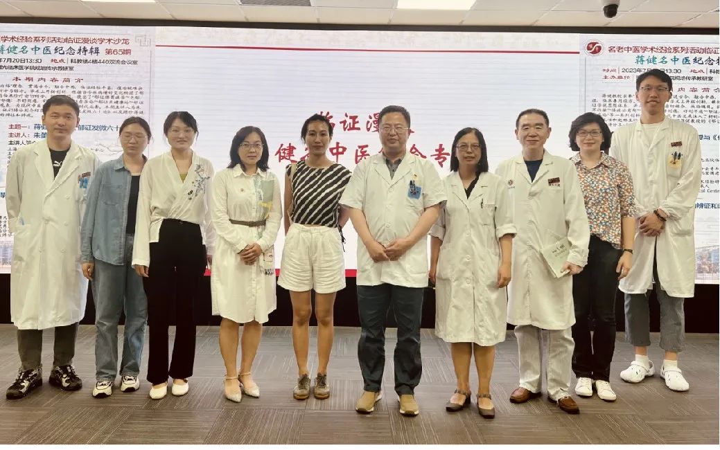 蒋健上海市名老中医学术经验研究工作室、蒋健岐黄学者工作室继承人朱蕾蕾主任医师在活动上介绍蒋健《郁证发微六十论》的体系构架;血液内科赵琳主任医师通过临证案例分享呈现蒋健大内科思想对专科医生的影响。蒋健的学生与学院学生、学员60余人参加此次活动。