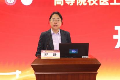 赵琛致欢迎辞,她表示要进一步推动中医医工融合专业的教学合作,深入交流探讨,共同推进中医药医工融合专业教学联盟建设步伐。