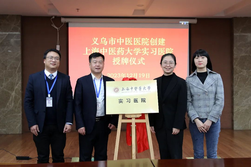 12月19日下午我校举行义乌市中医医院实习医院揭牌仪式,教务处处长张亭立、副处长沈宇弘,岳阳临床医学院副院长沈雁,义乌市卫健局党委委员方才宝,义乌市中医医院党委书记王利健、院长张文斌等参加了授牌仪式。