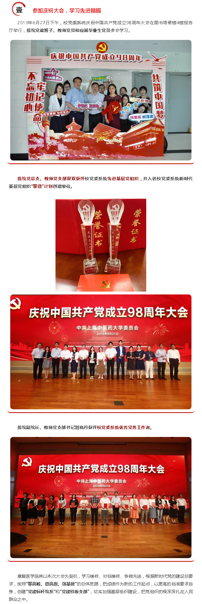 康复医学院庆祝建党98周年系列主题活动