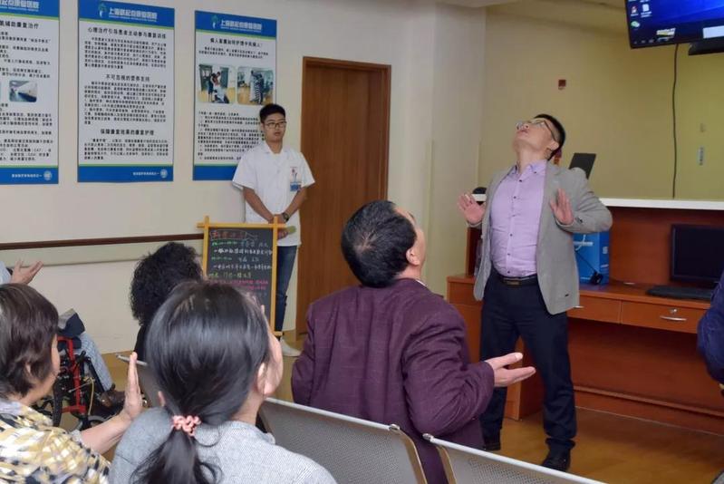 接着,单院长还从骨质疏松、肩痛和肩手综合征、肩关节半脱位、压疮、深静脉血栓、跌倒等几方面讲解了脑卒中后继发障碍的康复。在与病患的沟通中,单院长将严谨晦涩的科学语言转化为通俗易懂的医患交流,并屡屡结合小测试、小训练帮助病患理解和掌握脑卒中康复的小窍门,得到在场听众的热烈反响。