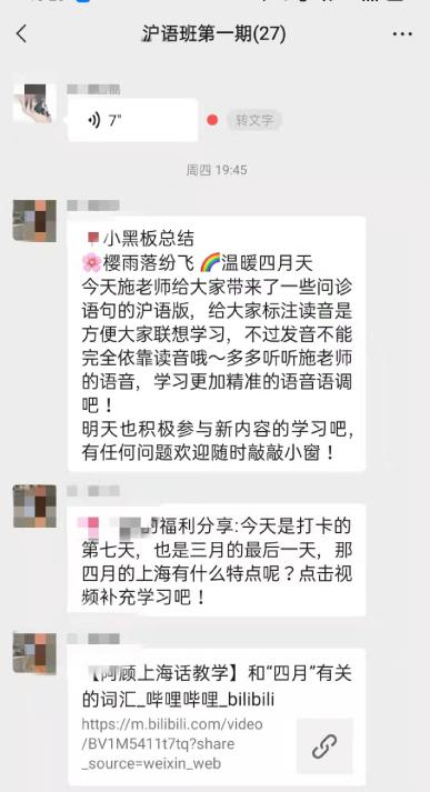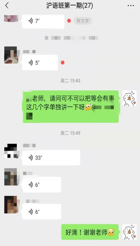 同学们担心是否与校内课程或学校活动冲突?完全不用担心!沪语班课堂采用“随听随学”的教授形式。老师会把每人所学的文字版与语音版发到群里,同学们可以自行安排学习时间,更有老师线上答疑拓展