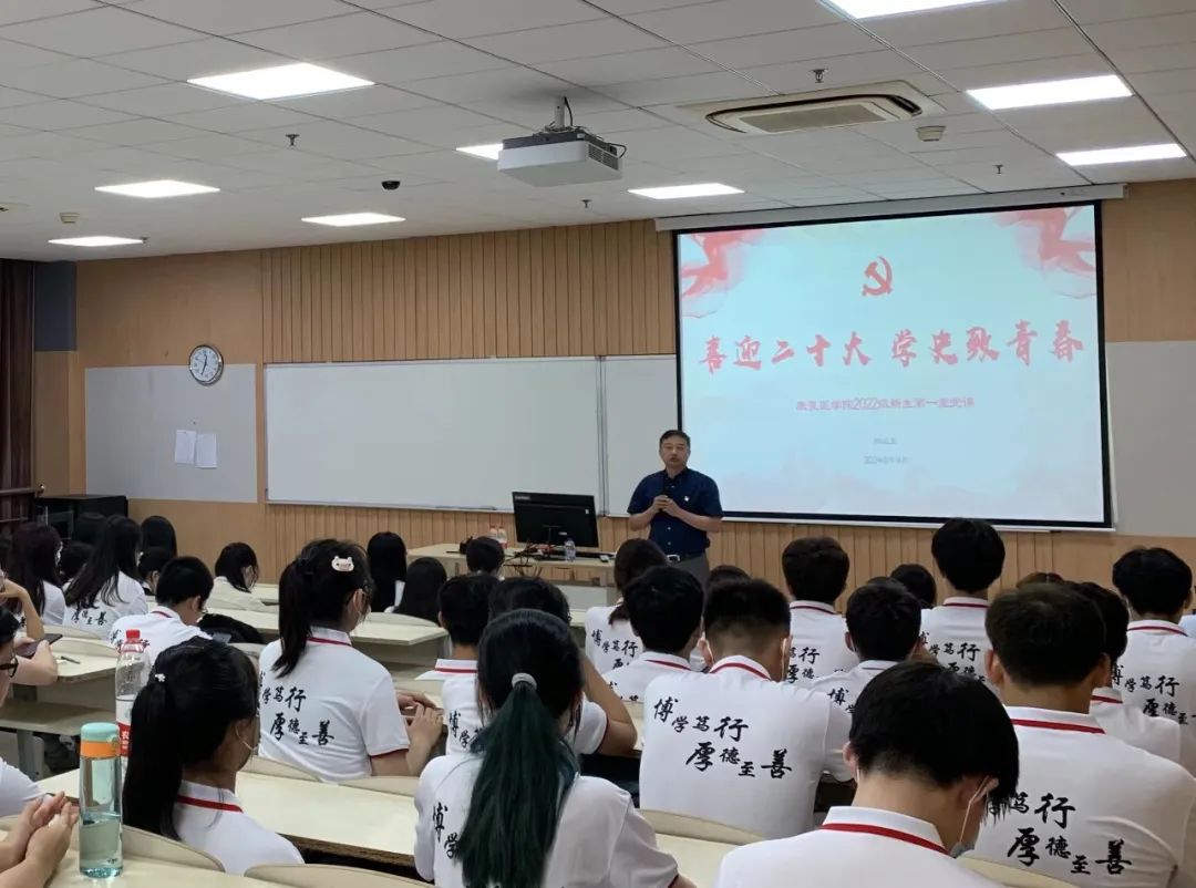 康复医学院党总支书记向延卫以“喜迎二十大 学史致青春”为主题开篇,与全体新生共同探讨历史使命、国家建设、中医药事业与个人荣辱之间的辩证关系,讲授了一堂别开生面的新生党课。他着重介绍了以在全国抗击新冠肺炎疫情表彰大会上受到表彰的我校附属曙光医院张炜医生和附属岳阳中西医结合医院王振伟医生为代表的的上中医人临危受命、逆行武汉,发挥中医特色精准施策、中西结合,在武汉、上海等地疫情防控工作中做出的杰出贡献,深深震撼了在场聆听的每一位师生。随后,向延卫带领师生们回顾了大时代里不懈奋进的开云电竞官网下载安卓校史和康复医学院院史,生动再现了上中医人和康复人团结进取、砥砺前行的动人历史画卷。他鼓励全体新生牢记“博学笃行 厚德至善”的院训,以先进典型为榜样,在感悟时代、紧跟时代中珍惜韶华,自觉按照党和人民的要求锤炼自己、提高自己,做到志存高远、德才并重、情理兼修、勇于开拓,在火热的青春中放飞人生梦想,在拼搏的青春中成就事业华章。