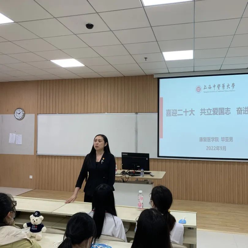 金菊逸彩,丹桂飘香,值此收获硕果又播种希望的中秋时节,2022级康复学子如约而至,在三星河畔、多彩杏林共同开启青春征程!为喜迎党的二十大胜利召开,教育引导新生树立远大理想,明确人生方向,以昂扬向上的精神状态投入到大学阶段的学习和生活中去,9月15日下午康复医学院在10号楼105教室开展了“喜迎二十大 奋斗正青春”康复医学院2022级新生开学第一课活动。康复医学院党总支书记向延卫、院长单春雷、副书记毕亚男、副院长刘晓丹、许东升、各教研室主任、辅导员和本硕博新生共同出席,活动由毕亚男主持。