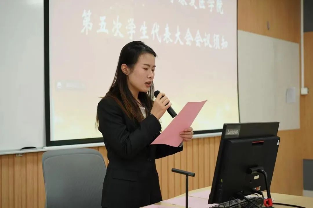 毕亚男代表学院党总支向学代会的召开表示祝贺,对第四届主席团的工作给予高度肯定,并代表学院向代表及全员学生们提出四点希冀。期望全院青年认真学习贯彻党的二十大精神,牢记习近平总书记的嘱托,做到“有一份热便发一份光”,鼓励青年人坚定理想信念、勇于担当责任、练就过硬本领、踏实埋头苦干,争做心中有梦、眼中有光、手中有招、脚下有路的新时代新青年,让青春在全面建设社会主义现代化国家的火热实践中绽放绚丽之花。