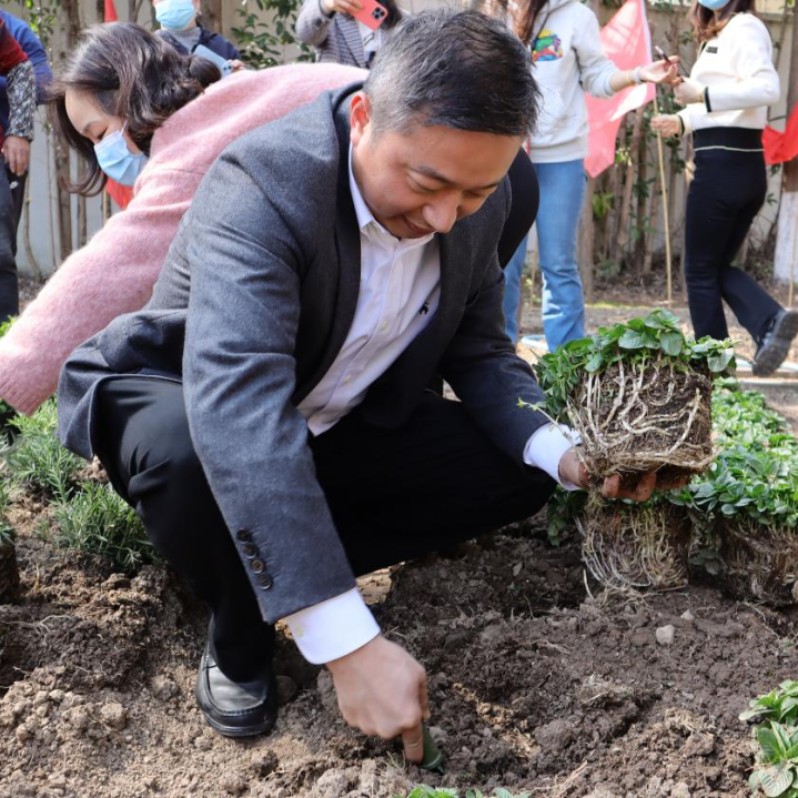 “种百草,承医药”,杏树种植完毕,师生们携手抵达惠南校区百草园,首次为这里种上中药,平添一份药香。芍药、马兰、龙牙草、栀子花、迷迭香和薄荷分别寄寓着真诚、机敏、坚强、敬仰、谦逊的殷殷期待。在此次种百草活动过程中,师生们不仅参与了劳动实践,也学习了新的中药知识,传承了中医药特色文化,也为春意盎然的惠南校区增添了一份独特的魅力。