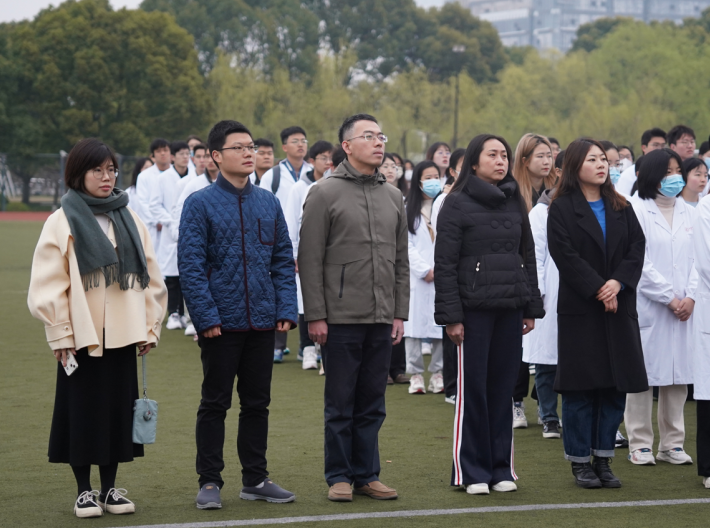 校学(研)工部副部长王鑫老师、康复医学院党总支副书记毕亚男老师、学(研)工部齐久祥老师、张雯怡老师以及学院青年班主任霍贝贝老师和辅导员孙雅静老师,与康复医学院2021级、2022级全体学生一同参加了这场庄严的升旗仪式,仪式由2021级康复物理治疗专业李文祥同学主持。