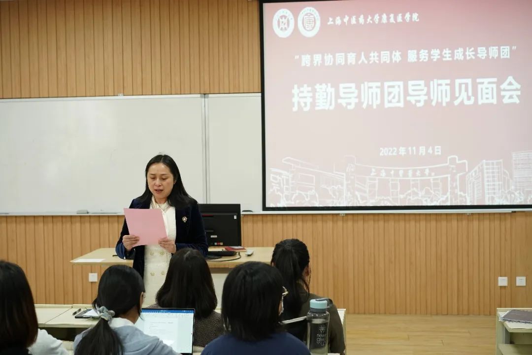 为深入贯彻党的二十大精神,努力培养德智体美劳全面发展的卓越中医药康复人才,实现学生教育、管理和服务工作协同创新发展,2022年11月4日中午,在康复医学院10116会议室进行了“跨界协同育人共同体,服务学生成长导师团”——持勤导师团导师交流研讨会,会议在总结分享过去一年“持勤”导师团工作的基础上,就如何立足康复学科特色及人才培养需求,实现学生思想政治工作与学院人才培养目标的融合创新发展展开讨论。