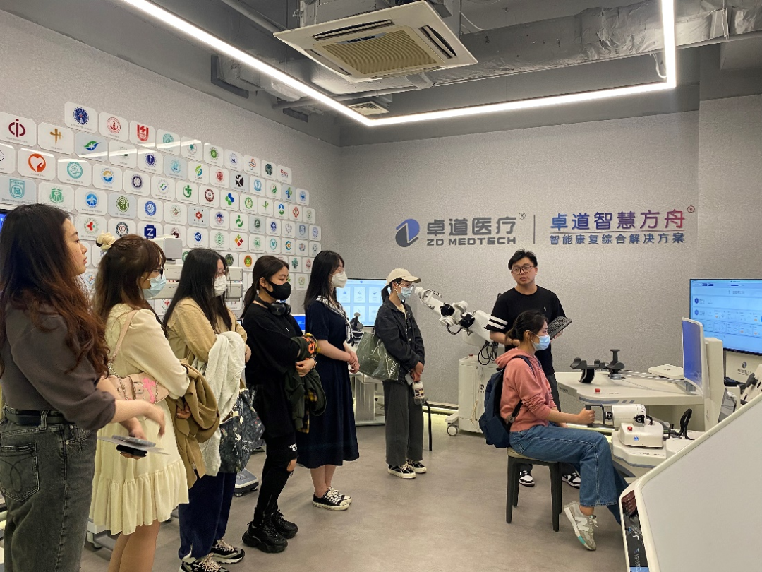 为深入学习贯彻习近平新时代中国特色社会主义思想,落实立德树人根本任务,培养德智体美劳全面发展的康复创新人才, 2023年5月6日下午,康复医学院党总支副书记毕亚男、辅导员王馨娅、孙雅静和2020级的20位学生一同前往学院岐黄育人实践基地上海卓道医疗科技有限公司参观,走进“康复机器人”世界,深入了解“医工结合”康复发展现状。