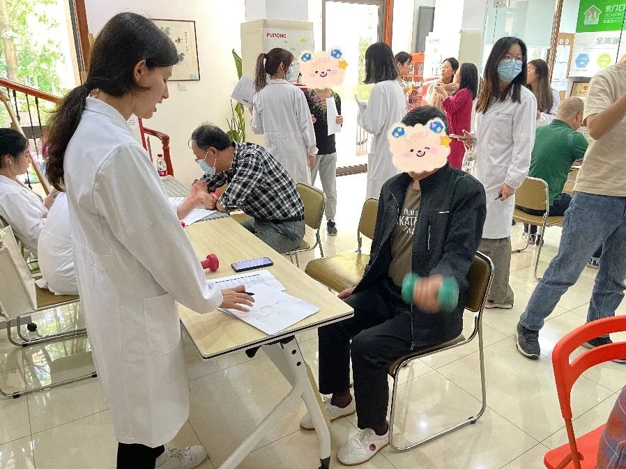 来自康复医学院的师生志愿者们通过站点轮转测试的方式,为社区老年人提供了握力测试、肌力测试及认知测试等一系列健康筛查项目,帮助老年人知晓并了解自己目前健康情况。活动过程中,社区老年朋友们对我们的活动展现出了极大的兴趣。
